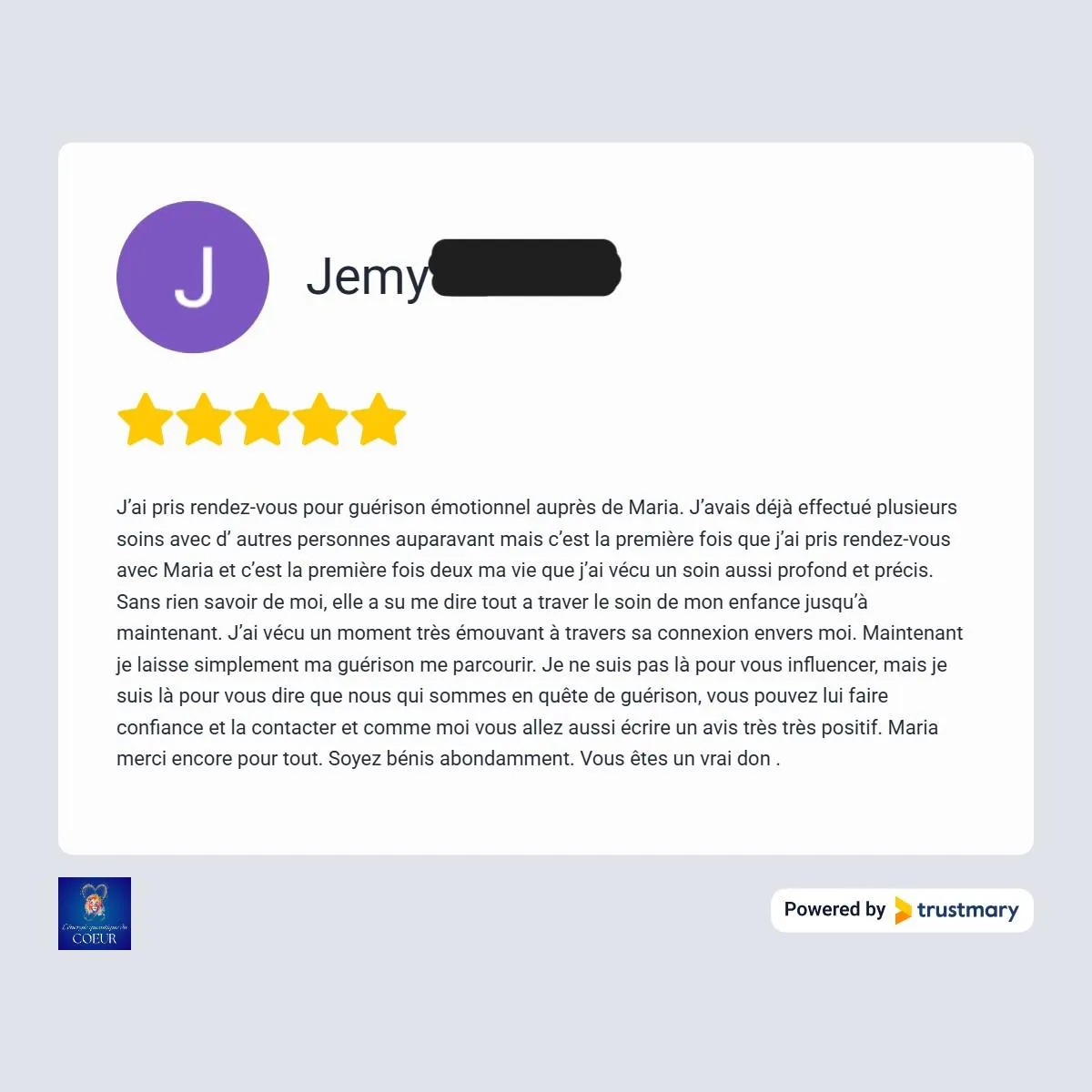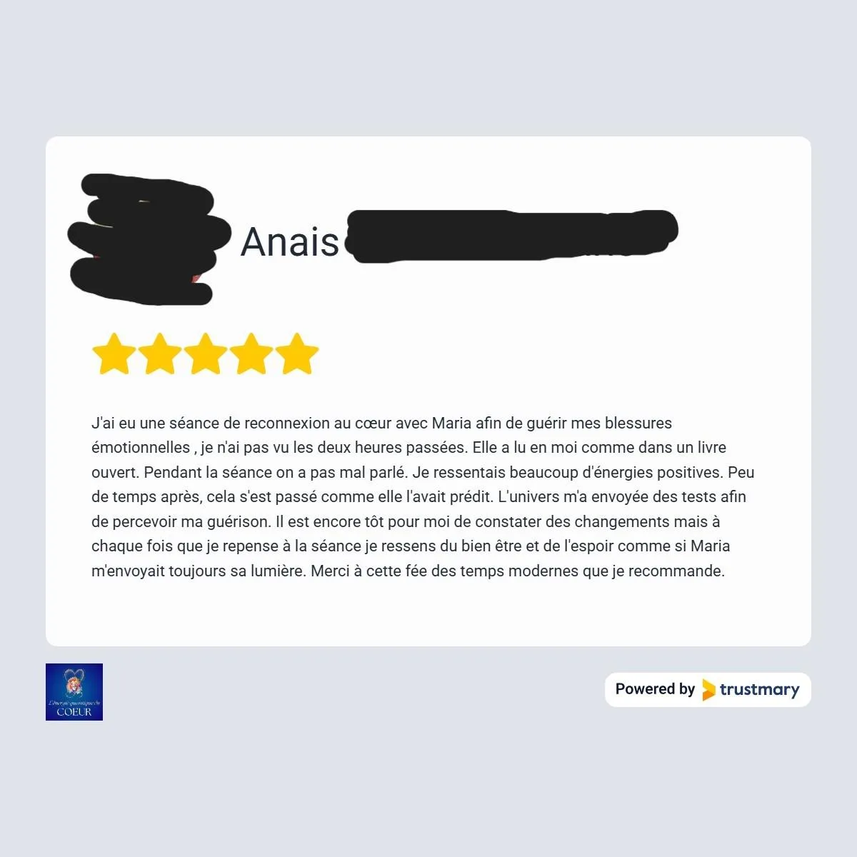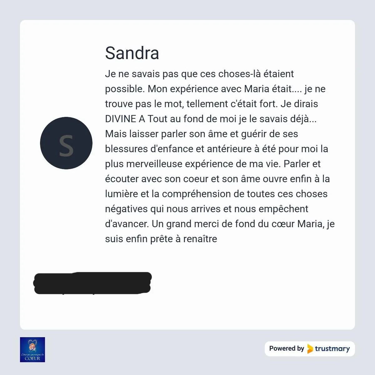 Je me suis libérée de cette emprise toxique que je subissais et j'ai retrouvé l'amour inconditionnel, le respect de moi même, la joie, la paix, le bien-être et l'abondance dans ma vie